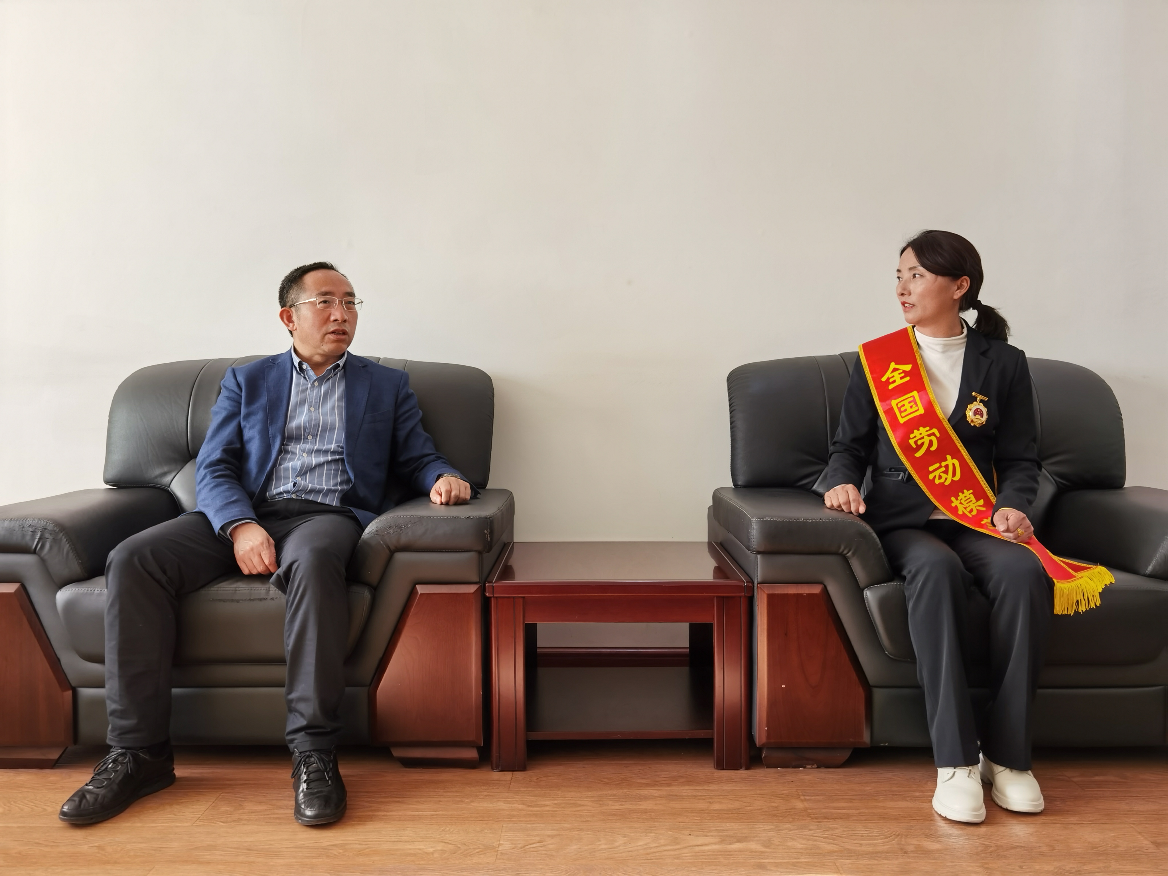 11月25日,省供销合作社党组书记、理事会主任和丽贵主持召开座谈会,与载誉归来的全国劳动模范砚山县云砚养殖专业合作社理事长陆云共同学习习近平总书记在全国劳动模范和先进工作者表彰大会上的重要讲话精神,大力弘扬劳模精神、劳动精神、工匠精神,激发全省供销系统干部职工劳动热情和创造活力,为推动全省供销事业高质量发展汇聚强大正能量。省供销合作社党组成员、理事会副主任宋云河出席座谈会。