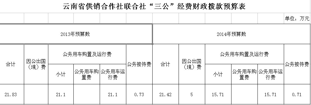 云南省供销合作社联合社2014年“三公”经费预算情况说明