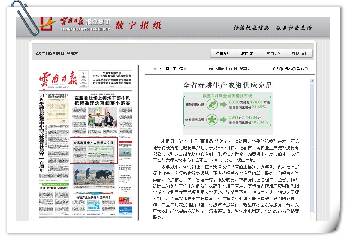 【云南日报】全省春耕生产农资供应充足