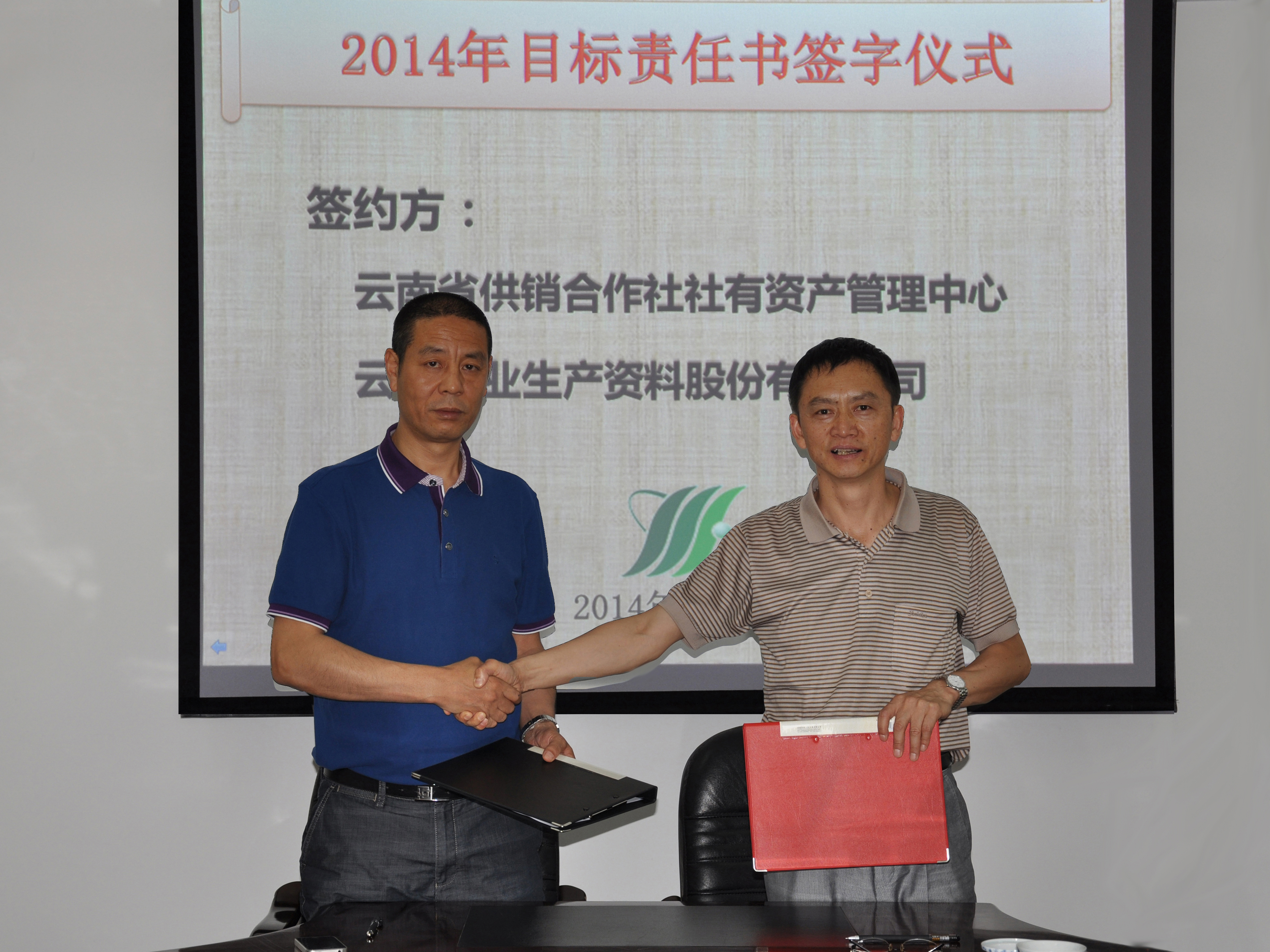 2014年5月12日,云南省供销合作社社有资产管理中心与云南农业生产资料股份有限公司在昆明签署了“2014年经济目标责任状”,省社财会处处长张国强、云农股份公司董事长朱华国分别代表双方签字。该责任状的签署对确保社有资产保值增值、充分调动云农股份公司全体干部职工的积极性将起到积极作用。
